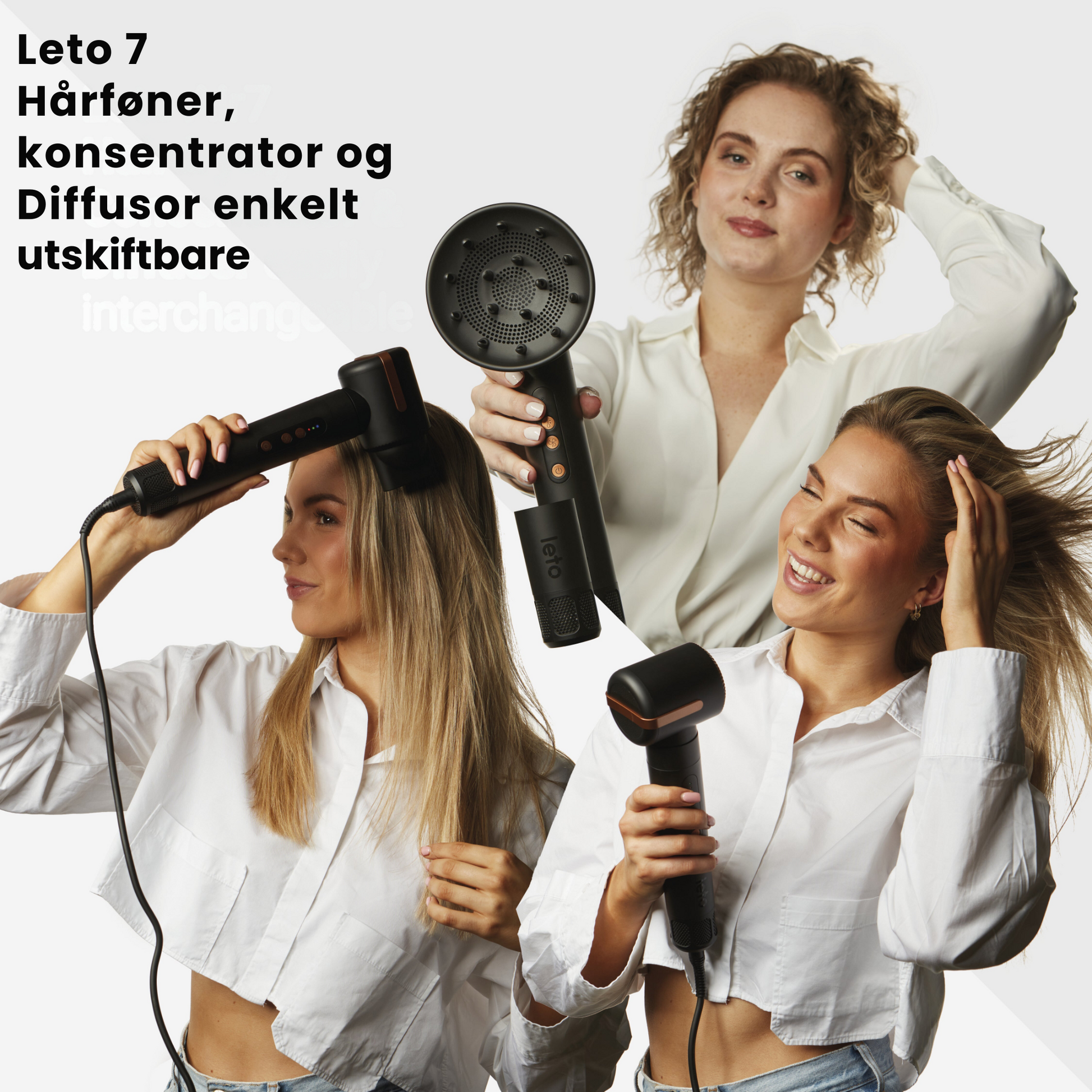 Leto 7 in 1 er allsidig og tilpasningsdyktig, og passer til alle hårtyper, fra krøllete til glatt hår og både tørt og vått hår.