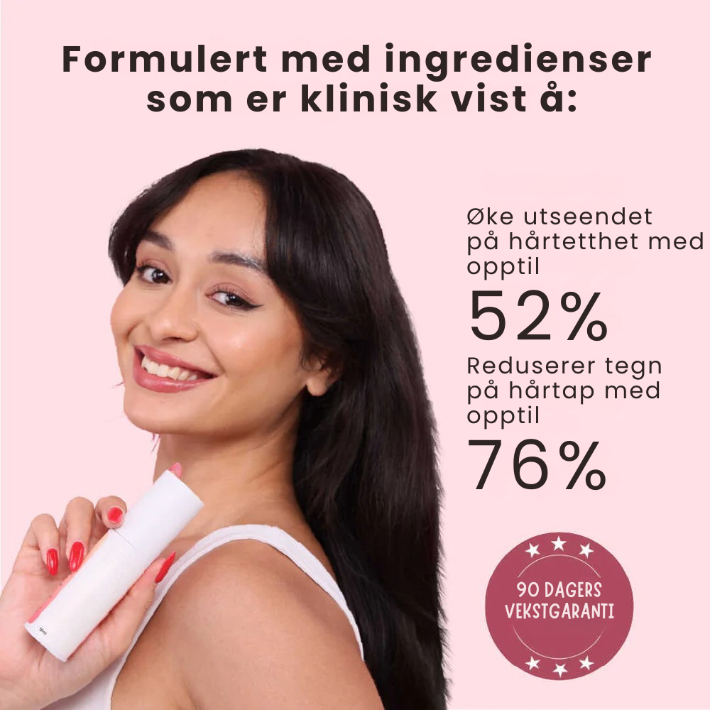 Si farvel til tynnere, livløst hår – vårt dermatologisk utviklede Hair Growth Spray transformerer håret ditt fra rot til spiss. Få fyldigere, glansfullt og sunnere hår hjemme, uten dyre behandlinger, operasjoner eller sterke kjemikalier. Fullt av kraftige naturlige ingredienser som vitaminer, ekstrakter og peptider, gir det deg håret du fortjener.