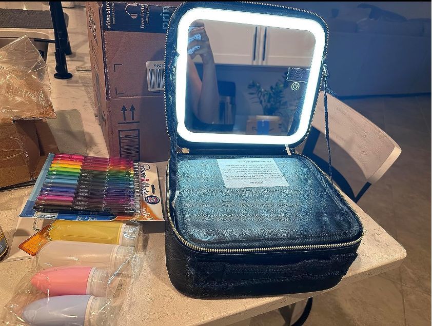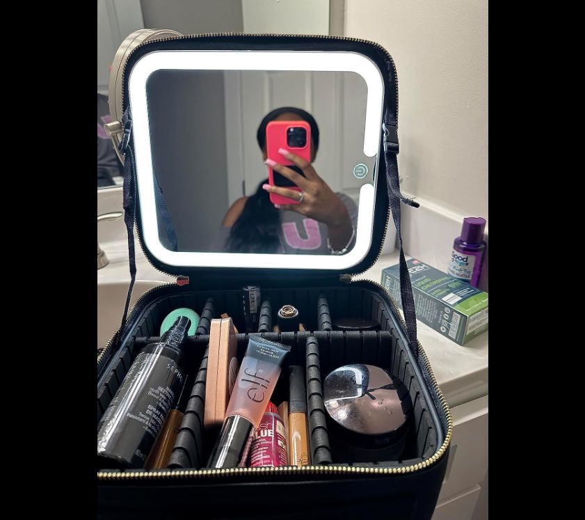 "Jeg absolutt elsker dette. Den holder all sminken min. Belysningen er perfekt og den er lett å ha med seg rundt."